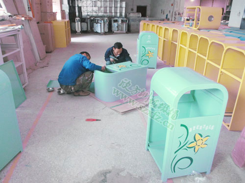 幼兒園的鍍鋅烤漆鋼制垃圾桶采用冷軋鋼材料,外框鍍鋅鋼厚度為2mm;內膽鍍鋅鐵皮厚0.5mm; 外桶L550*W550*540*H1030MM;新做滴鍍鋅烤漆垃圾桶,搖蓋式雙面投遞,上面絲印工藝的印花保持3到4年。還絲印有不可回收垃圾,英文字母及環(huán)保標志等。五年以上的熟練老員工,經剪鈑下料、折彎、沖壓、焊接、打磨、等工藝:表面經過除油、噴砂防銹處理后,再進行酸洗磷化處理;表面清理干 燥后整體進行靜電噴涂或烤漆處理,靜電噴涂是經過流水線高溫固化爐固化后再出爐冷卻,加工后的塑粉附著力強,不易剝落。