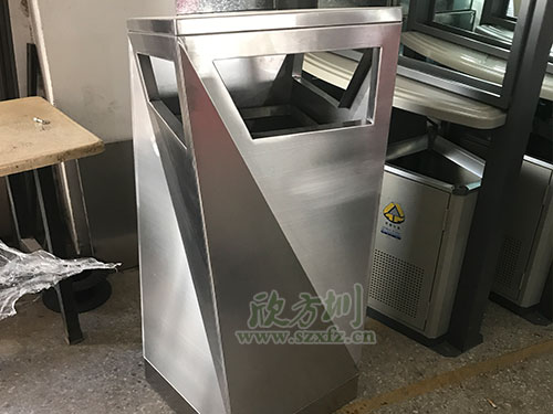 鏡面效果氛圍預拋光和精拋光,預拋光使用硬性或較硬的拋光輪對經過磨光的不銹鋼垃圾桶的鈑金加工表面進行處理的過程,它能出去磨削表面較粗的痕跡。精拋光使用軟性對預拋光表面作進一步的加工,除去預拋光留下的痕跡,獲得光亮鏡面。