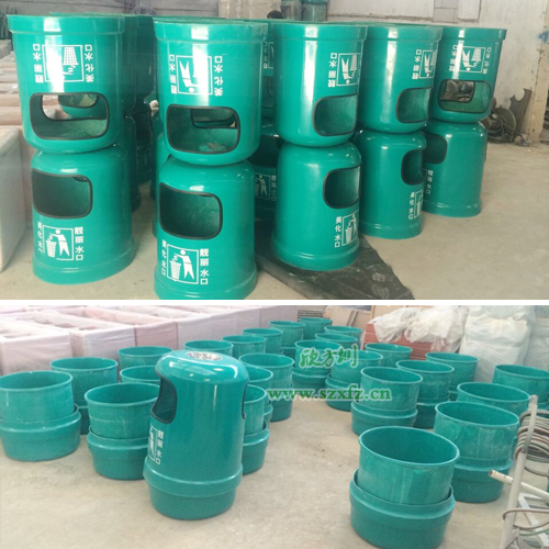 這次采購的A12玻璃鋼果皮箱型號,我們的標準按照客戶的要求來定制生產(chǎn)。A12玻璃鋼果皮箱規(guī)格為:550*900*2mm.兩款桶的顏色為紫藍,翠綠。按照雙方約定的標準,事先做的樣品,發(fā)給對方參考確認,再進行做批量生產(chǎn)。垃圾桶頭口貼膠條,表面光滑,無裂痕,紋邊角加層。采用玻璃鋼不飽和聚酯樹脂和玻璃鋼纖維復合而成的材質(zhì),玻璃鋼垃圾桶邊角的厚度4mm,單邊帶有煙缸。桶中間加絲印,愛護環(huán)境,人人有責,垃圾桶不落地,長安更美麗等標語。其他的垃圾桶,翠綠色加有可回收垃圾桶字樣。長安街道辦A12玻璃鋼果皮箱,簡潔、美觀,色澤鮮艷,經(jīng)久耐用,對人體無害,不褪色油漆不脫落。