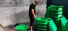 前天上午8點,金棉小區(qū)廢棄籃球場的東南角就響起了一陣陣沖洗聲,清潔人員劉師傅拿著水管沖洗著一只只垃圾桶,邊上一排晾著幾十只剛洗干凈的垃圾桶。這些垃圾桶都...