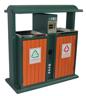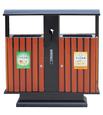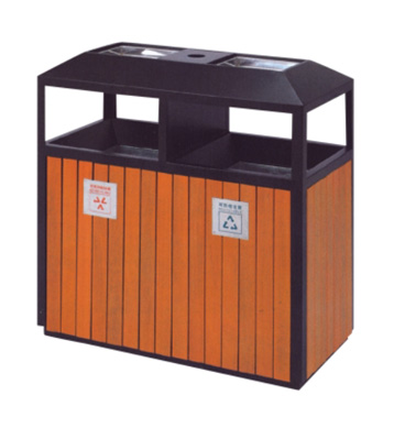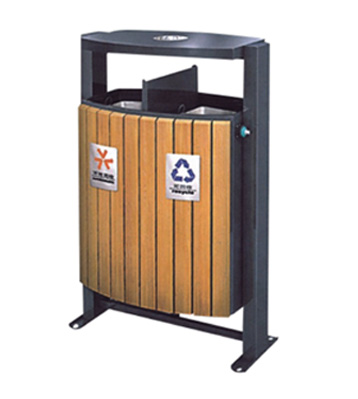 鋼木垃圾桶 鋼木選用防腐木、進口山樟木或塑木,經除蟲、防腐,烘干處理后加工成型。桶身框架冷軋鋼經酸洗磷化制作