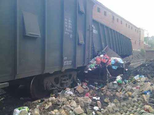 垃圾箱太近導致貨運火車車廂翻到