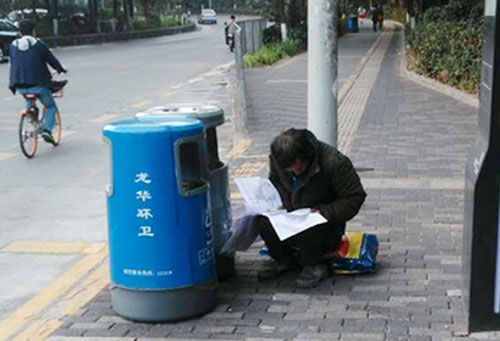 勵志!拾荒男子垃圾桶旁刻苦學(xué)習(xí)