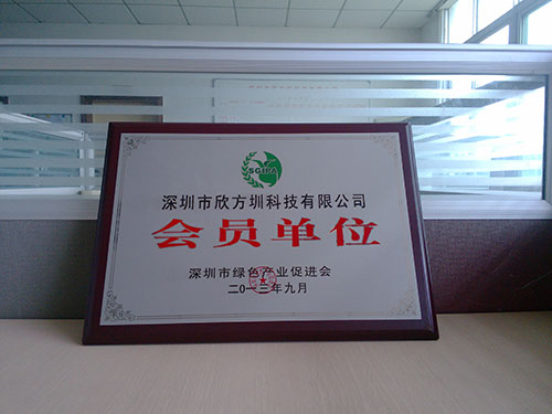 2013年9月,經(jīng)過深圳市綠色產(chǎn)業(yè)促進(jìn)會的審核批準(zhǔn),欣方圳科技榮獲“深圳市綠色產(chǎn)業(yè)促進(jìn)會會員單位”殊榮。