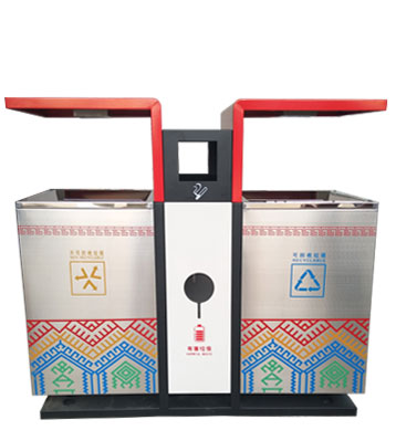 深圳新標準城中村街道社區不銹鋼五分類垃圾桶由有害垃圾、玻璃、金塑紙(為金屬、塑料、紙張的簡稱)、廚余垃圾、其他垃圾這5分類不銹鋼垃圾桶組合而成。其中金塑紙、其他垃圾日常產生量較大,所以分類收集容器也