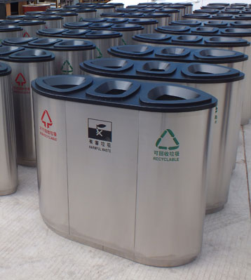 欣方圳商場不銹鋼三分類垃圾桶