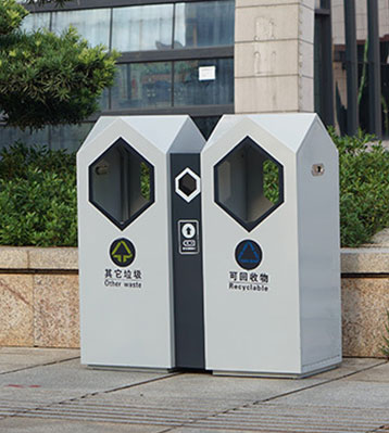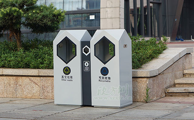 欣方圳分類環保垃圾桶選用優質鍍鋅板,運用現在都市風格,融合城市元素,簡約大方。