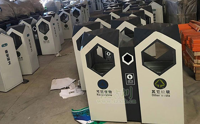 • 產品材質:分類環保垃圾桶采用優質冷軋鋼經除油-除銹-表調-磷化處理后,表面采用汽車靜電粉末噴漆工藝,噴塑粉主要有丙烯酸粉末、聚酯粉末等。雙層防銹,漆面色澤耐久;