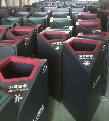 鋼板噴塑分類垃圾桶工廠批量生產
