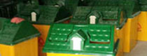玻璃鋼垃圾屋桶身和內膽部分,采用高級玻璃鋼材質一次成型,經過打磨、除塵 、噴漆等一系列后期工藝然后出成品。