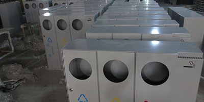 • 產品材質:欣方圳酒店鋼制分類垃圾桶采用優質冷軋鋼材料經剪鈑下料、折彎、沖壓、焊接、打磨、等工藝:表面經過除油、噴砂防銹處理后,再進行酸洗磷化處理;表面清理干燥后整體進行靜電噴涂或烤漆處理,靜電噴涂是經過流水線高溫固化爐固化后再出爐冷卻,加工后的塑粉附著力強,不易剝落;