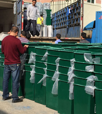 廣東通驛高速服務(wù)區(qū)玻璃鋼無(wú)蓋垃圾桶批量生產(chǎn)圖
