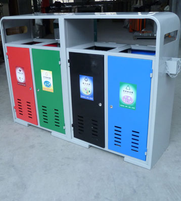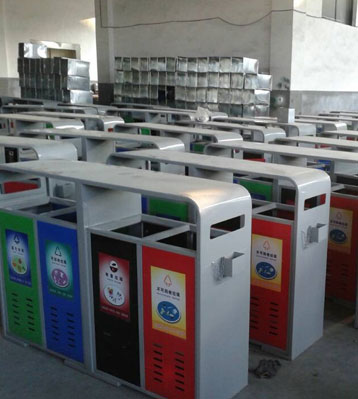 戶外鋼制烤漆四分類垃圾桶生產圖