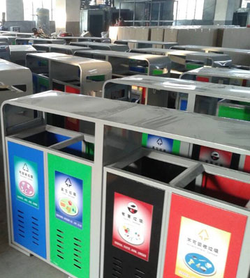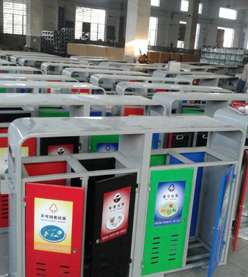 戶外鋼制四分類垃圾桶批量生產圖