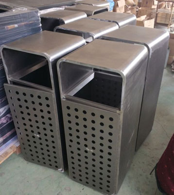• 產品材質:欣方圳戶外鋼制烤漆垃圾桶采用優質冷軋鋼材料經剪鈑下料、折彎、沖壓、焊接、打磨、等工藝:表面經過除油、噴砂防銹處理后,再進行酸洗磷化處理;表面清理干燥后整體進行靜電噴涂或烤漆處理,靜電噴涂是經過流水線高溫固化爐固化后再出爐冷卻,加工后的塑粉附著力強,不易剝落;