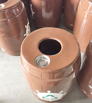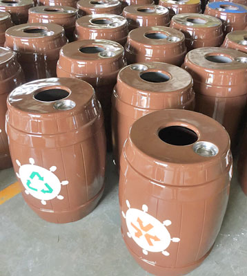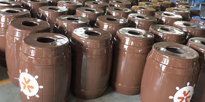 • 產品材質:欣方圳玻璃鋼仿木桶組合分類垃圾桶采用優質玻璃纖維與進口樹脂著色合成,采用模具一次成型。玻璃鋼造型精美、潔凈、美觀、醒目、不退色,它具有強度高、耐腐蝕、耐酸堿、抗老化、太陽暴曬下 不變形、抗紫外線、操作方便等特點是其他材質無法取代的。