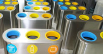 • 產品材質:欣方圳地鐵斜面投口不銹鋼三分類垃圾桶采用新型的剪鈑下料,折彎、沖壓、焊接、打磨、等工藝: 表面經過除油、噴砂防銹處理后,再進行酸洗磷化處理;表面清理干燥后整體進行靜電噴涂,涂層厚度達到 90um,經過流水線高溫固化爐固化后再出爐冷卻,加工后的塑粉附著力強,不易剝落;