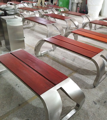 • 產品材質:不銹鋼公園休閑椅采用不銹鋼材質制作,椅條由客戶定制可選進口實木(防腐木.紅胡桃.山樟木等)、還可選擇鋼結構、玻璃鋼、鐵藝、塑木等。