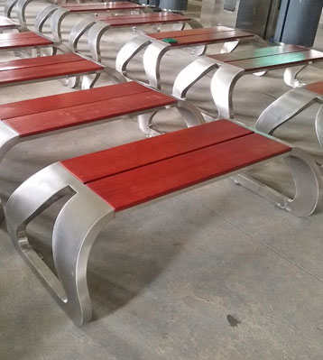 欣方圳不銹鋼公園休閑椅凳面防腐木材質制作流程示意圖,工藝領先,品質卓越,真正經久耐用。