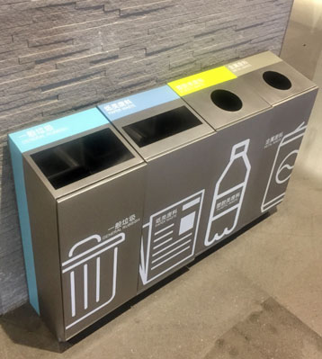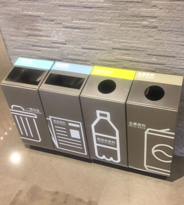 溫州濱江廣場(chǎng)5050購(gòu)物中心不銹鋼室內(nèi)四分類(lèi)果皮箱