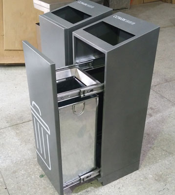 不銹鋼室內(nèi)滑軌四分類(lèi)果皮箱桶門(mén)推拉打開(kāi)方式