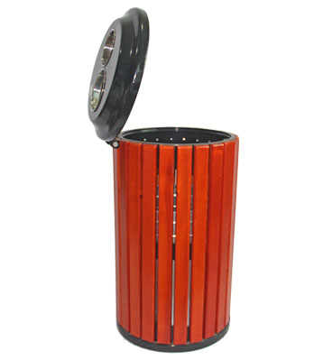 欣方圳戶外街道圓形鋼木單桶垃圾桶原材料
