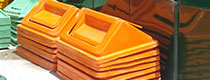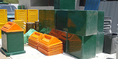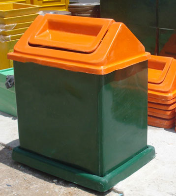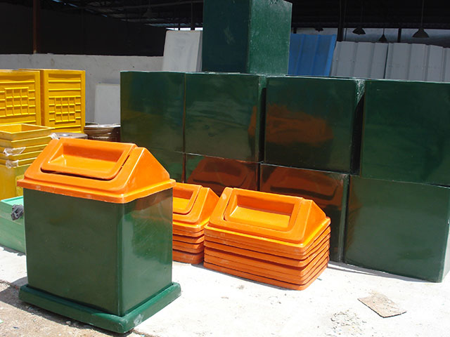 玻璃鋼垃圾桶桶身和內膽部分,采用高級玻璃鋼材質一次成型,經過打磨、除塵 、噴漆等一系列后期工藝然后出成品。