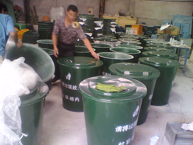 玻璃鋼垃圾桶桶身和內膽部分,采用高級玻璃鋼材質一次成型,經過打磨、除塵 、噴漆等一系列后期工藝然后出成品。