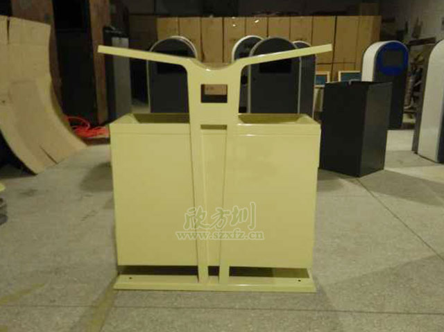 欣方圳專業生產鋼制展翅分類垃圾桶,車間有數控折彎機、數控沖床、滾圓機、數控車床、激光切割機、送樣機、鏜床、二保焊機等行業先進設備。